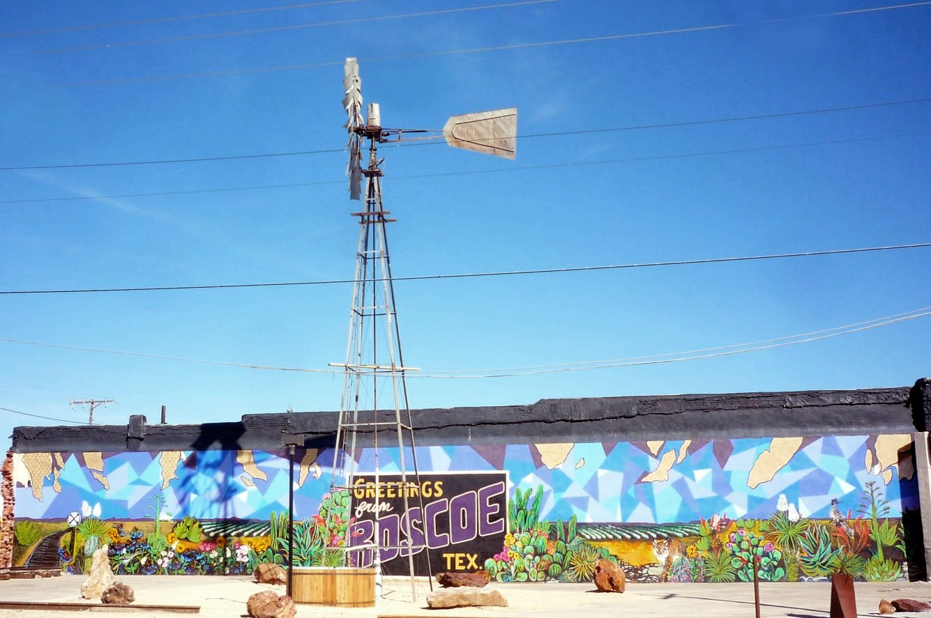 The City also has a new park located on the corner of Broadway and Main Street. It is called Windmill Park because it has a large windmill donated to the City by Jay and Scott Etheredge. The windmill is not a working windmill but is ornamental. It was raised in July by Ivey Windmill of Roscoe and 7 Wells Pump of Colorado City. On the wall next to the Cotton Belles shop is a huge mural painted by Calina Mishay Johnson, the same artist who painted the mural behind the Smackers building on Main Street.