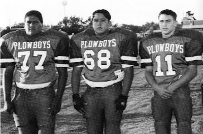 | The '82 defensive Plowboy line against an unidentified opponent. |
